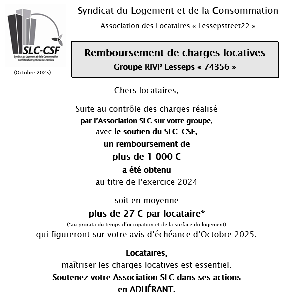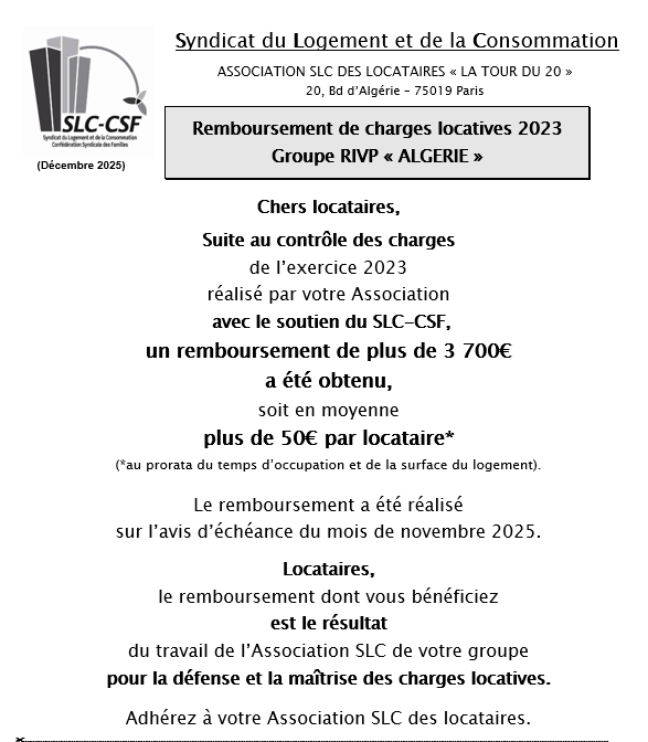 Remboursement de charges Groupe RIVP Lesseps 2025